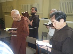 The Friary is on the northern side of Long Island, so I hopped on a Metro North train from New Haven to Bridgeport, CT, and then took a one-hour ferry ride across the Long Island Sound on a beautiful, sunny morning with a lot of tourists who looked like they were going to hit the Long Island beaches. The secretary at Little Portion Friary told me I could get a taxi from the ferry port to the friary, but when I told the taxi driver where I was going, he’d never heard of it. I had left the address at home, so I called Verizon 411. They didn’t have a listing for Little Portion Friary. Finally, the taxi driver’s dispatcher looked it up on the Internet for us, and we were on our way. As we were driving there, the taxi driver, who was hard of hearing, kept asking me to repeat where I was going. “Franciscan Friary!” I yelled. “A retreat center. I’m a Franciscan!” He kept asking why I was going there. “Retreat!” I yelled. “I’m going on retreat!”
