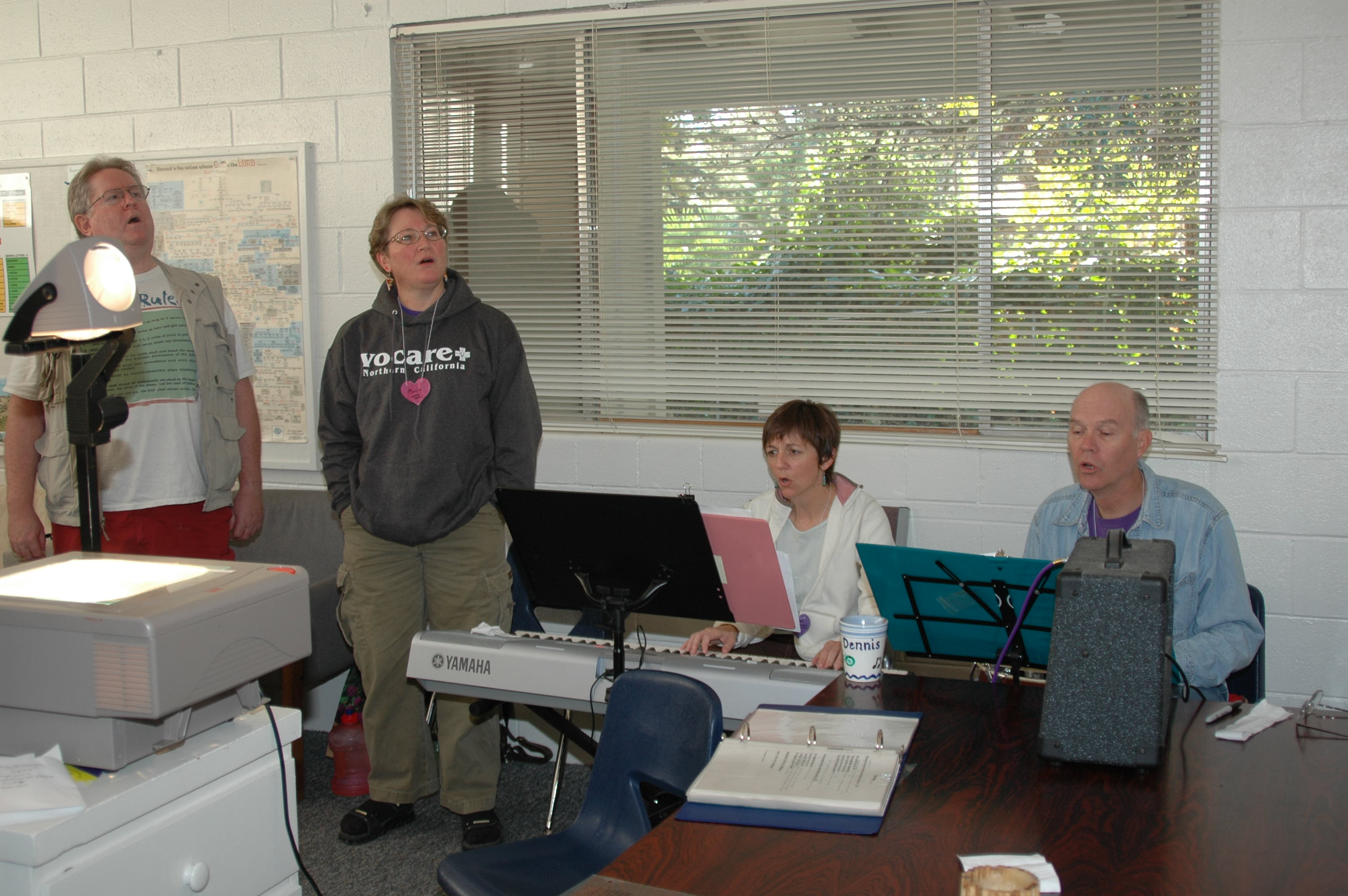 Singing at a young adults’ VOCARE retreat with Marcia, the Rev. John Mangels, and Dennis Engblom in 2006.